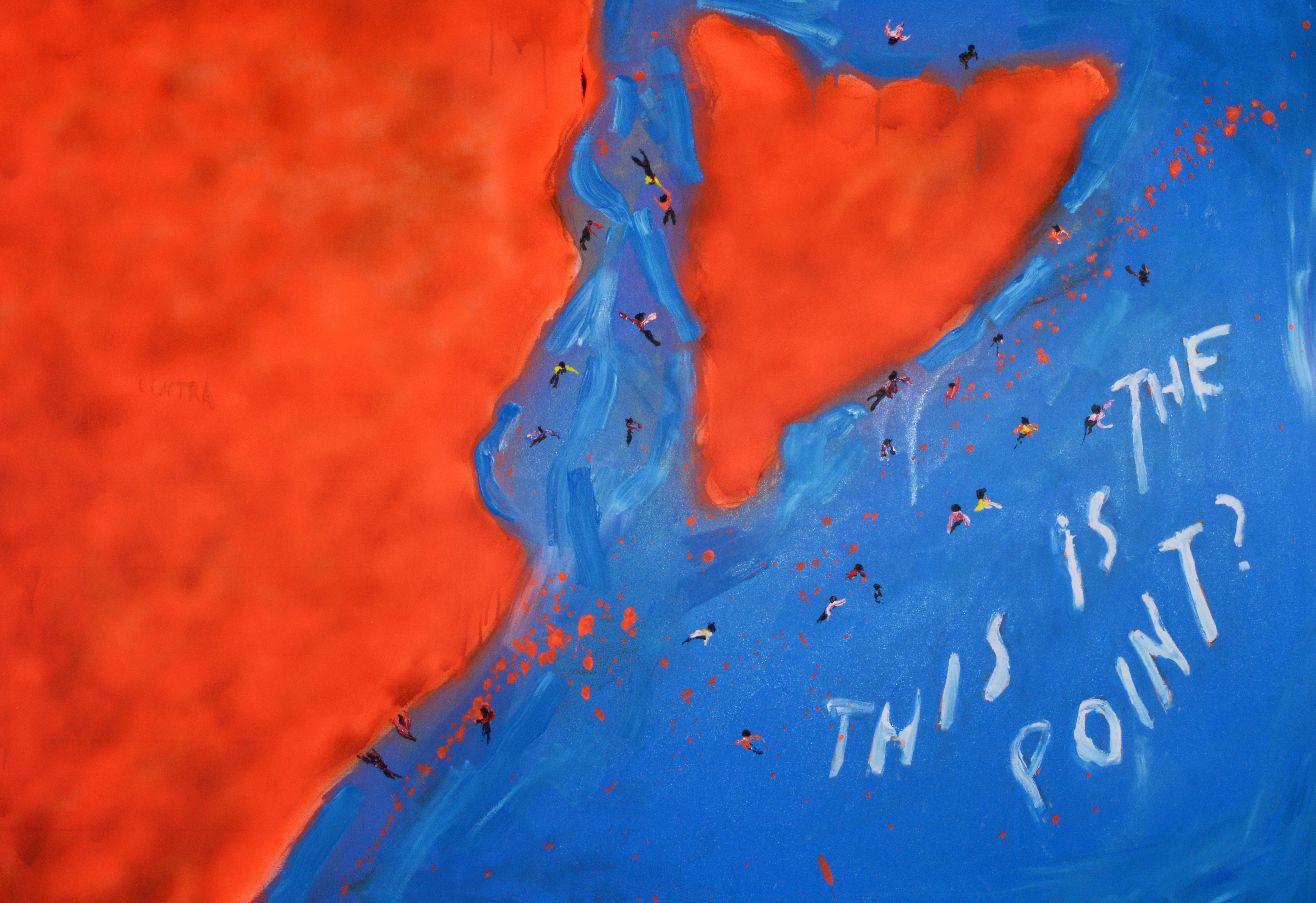 Acrylic and fluorescent ground marker spray on canvas (tribute to El Genovés), 114x162 cm., 2020 and found object